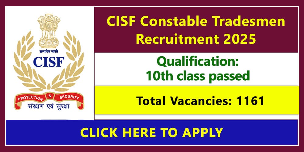 CISF Constable Tradesmen Vacancy 2025 | CISF कांस्टेबल ट्रेड्समैन रिक्ति 2025